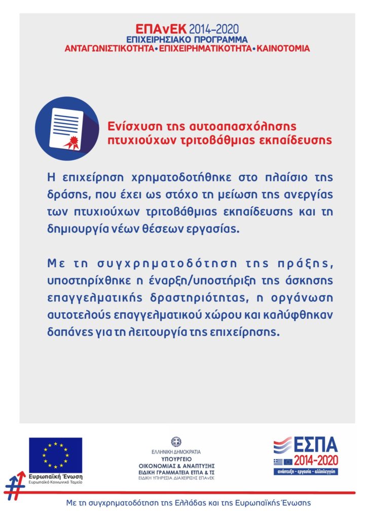 Ενισχυση αυτοαπασχολησης πτυχιουχων τριτοβαθμιας εκπαιδευσης